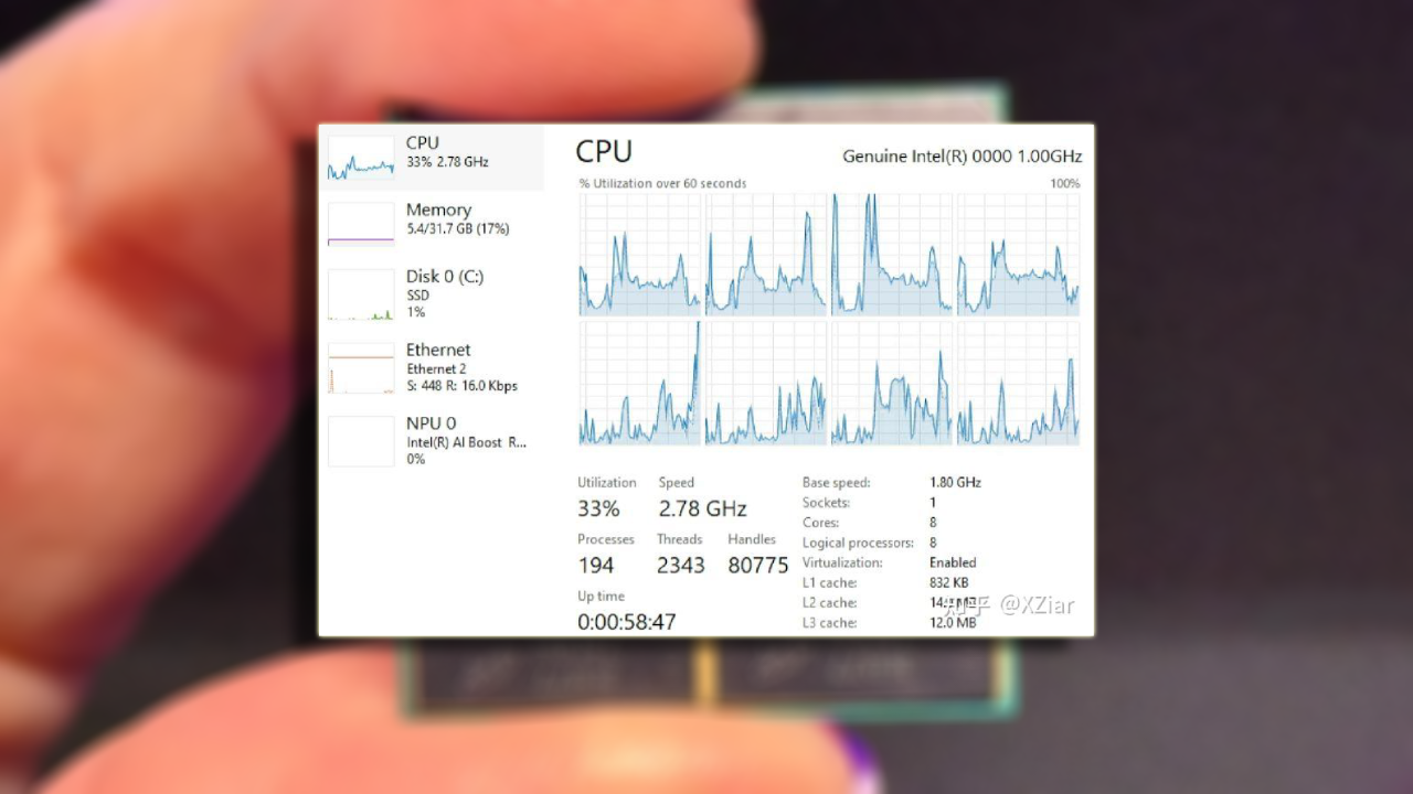 HXL has shared a sample of what appears to be an 8-core Lunar Lake-MX processor from Zhihu. The shared image showcases the CPU’s specifications in Task Manager, revealing 8 cores, but more importantly, just 8 threads.