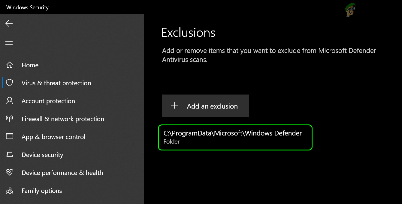 Add a Folder Exclusions in the Windows Security - Then enter the following path in the address bar: