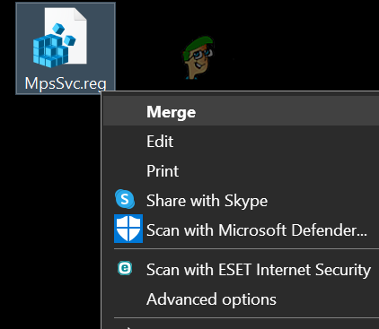 - Then close the Registry Editor and right-click on the above-mentioned file (e.g., MpsSvc.reg).