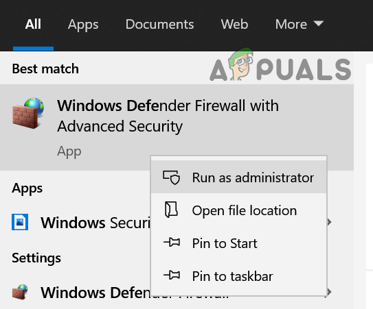 - Then right-click on Windows Defender Firewall with Advanced Security and select Run as Administrator.