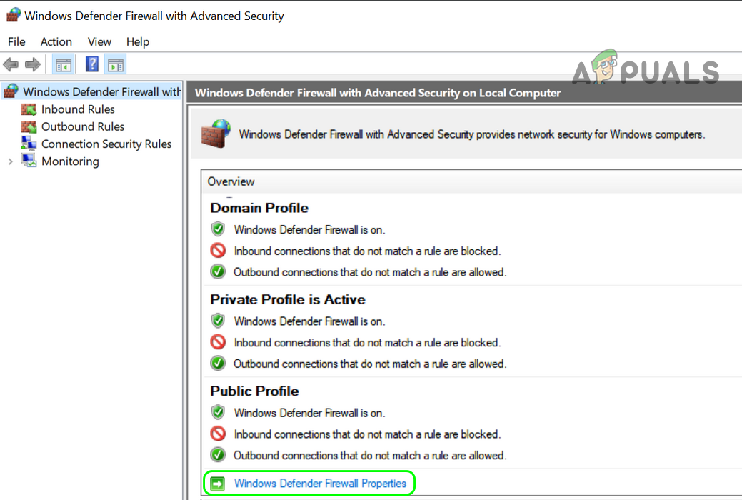 Open Windows Defender Firewall Properties - Then apply your changes and close the Windows Defender.