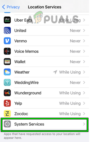 - If the issue is occurring with a Wi-Fi connection, head to the iPhone’s Location Services Settings and open System Services.