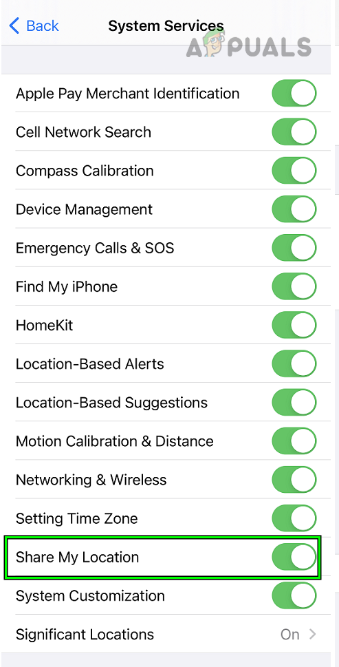 Enable Share My Location in the iPhone’s System Services - Now check if the iPhone’s location sharing is working fine.