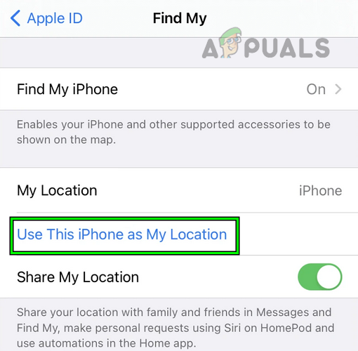 - If the issue persists, head to Find My Settings in the iPhone and enable Use This Phone as My Location.