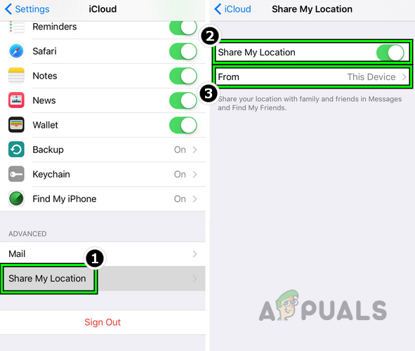 - If that did not work, set Share My Location to This Device and check if that solves the problem.
