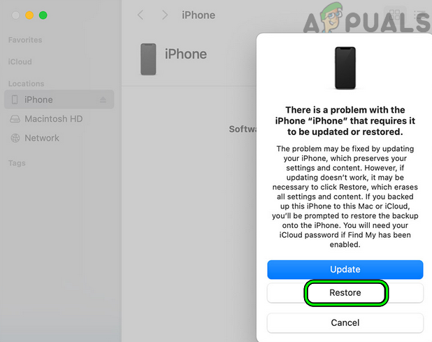 - Now click on Restore and afterward, confirm to restore the iPhone.