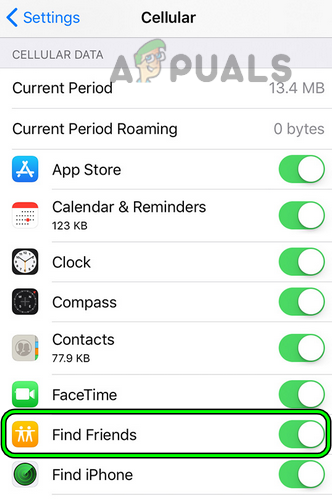 Your iPhone may fail to find friends on mobile data if the feature is not enabled. Here, enabling cellular data for Find Friends may clear the error.