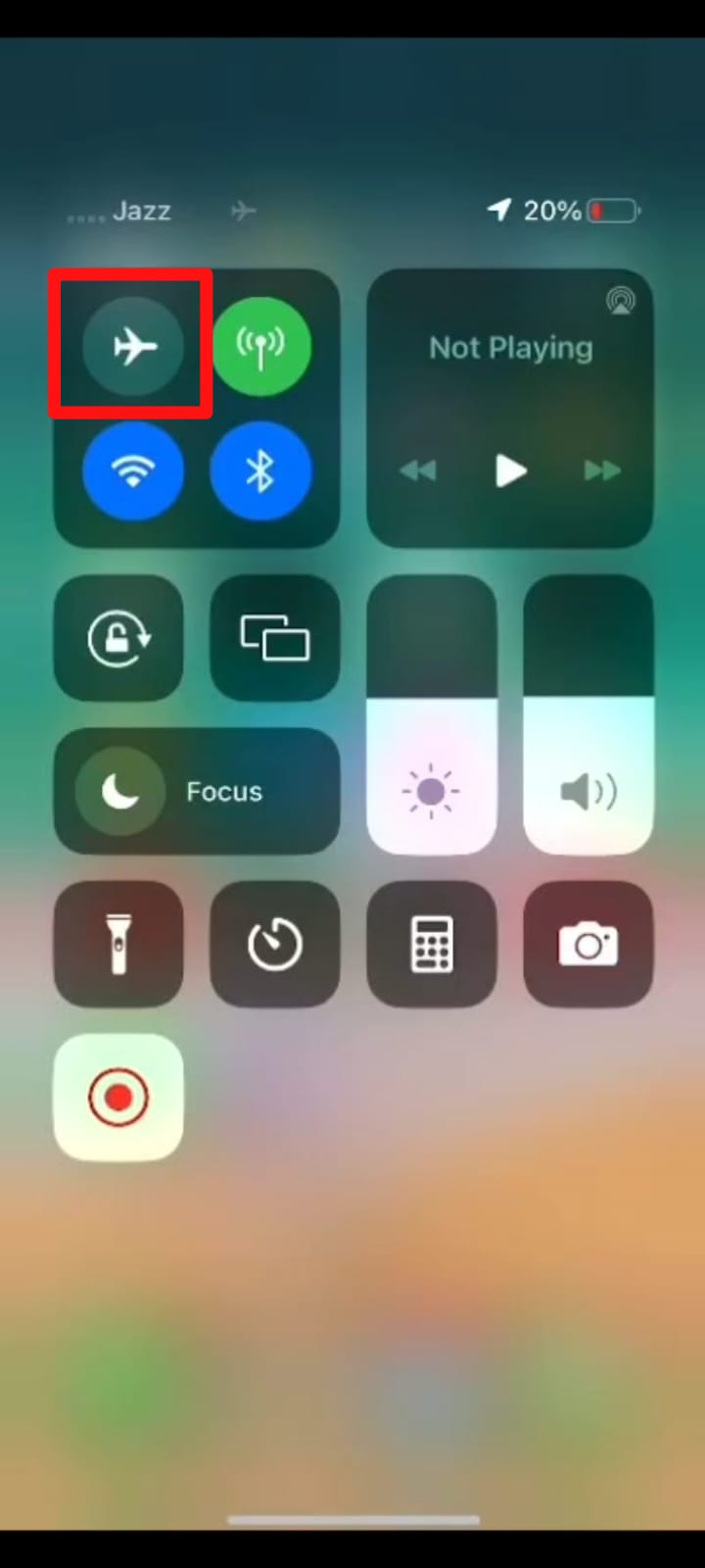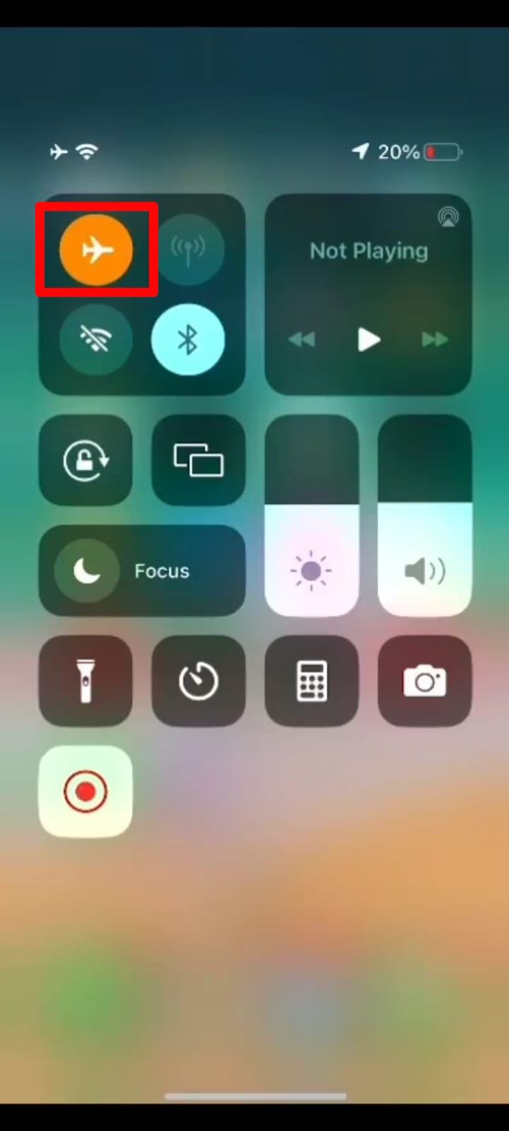 - In the Control Center, you will see an airplane icon representing “Airplane Mode”. Tap on the icon to turn on the mode. You will see a notification appear on the screen that notifies “Airplane Mode is On”.