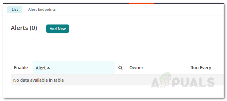 - You will be taken to the Alerts page where all the present alerts will be listed. Click on the Add New button to create a new alert.
