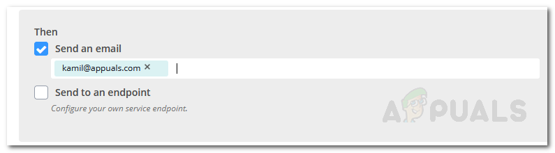 Adding an Alert - Once done, you can have it send you an email or send it to an endpoint that you will have to specify.
