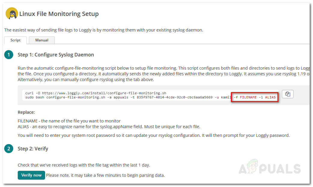 Linux File Monitoring - Make sure that you insert the filename and alias as mentioned on the page before entering the commands.