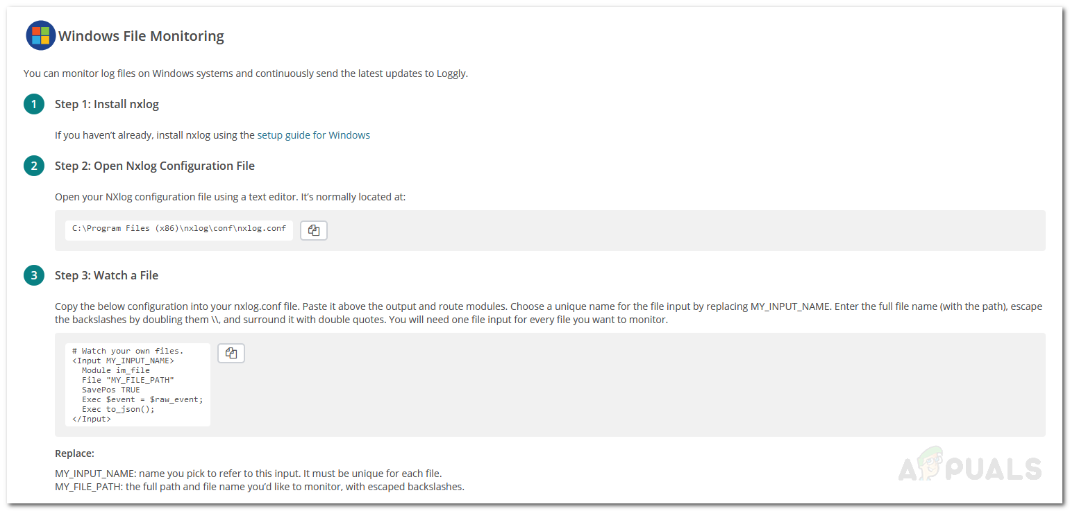 Source Setup - Follow the on-screen instructions i.e. download the Nxlog tool for log monitoring and then paste the configuration provided on the page in the config file of nxlog.