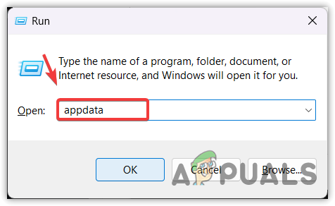 - Enter appdata in the search box and click OK to open the folder.