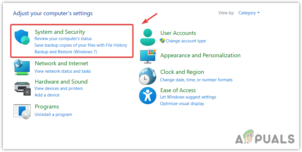 - Now go to System and Security > Windows Defender Firewall.