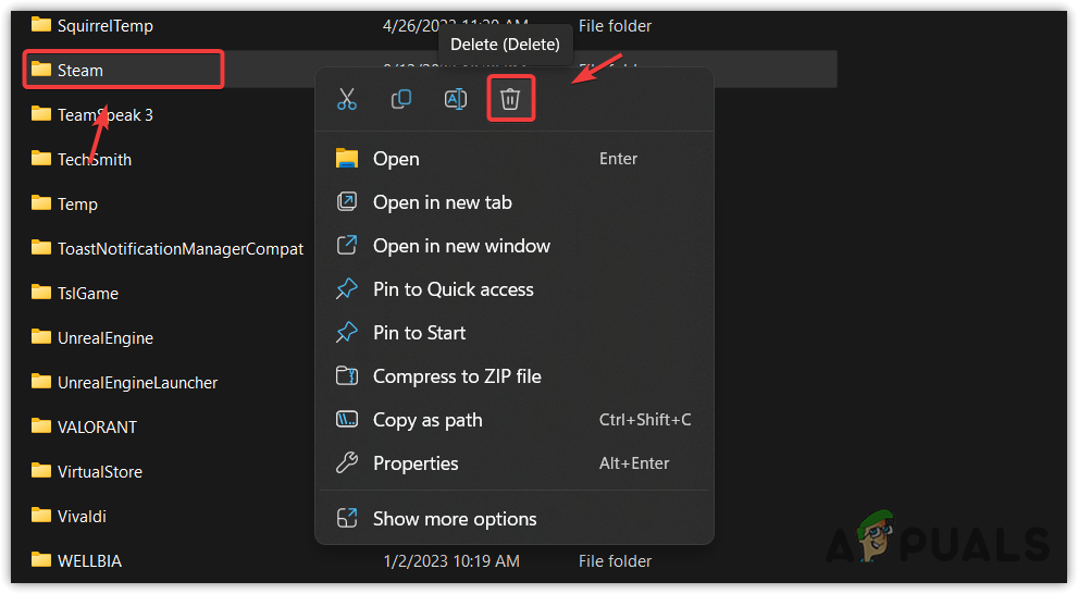 - Navigate to the Local folder and delete the Wayfinder folder if found. Otherwise, delete the Steam folder.