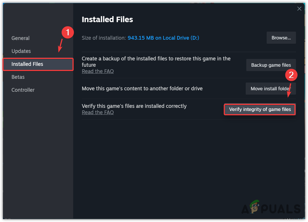 - Go to the Installed Files and click Verify the integrity of game files.