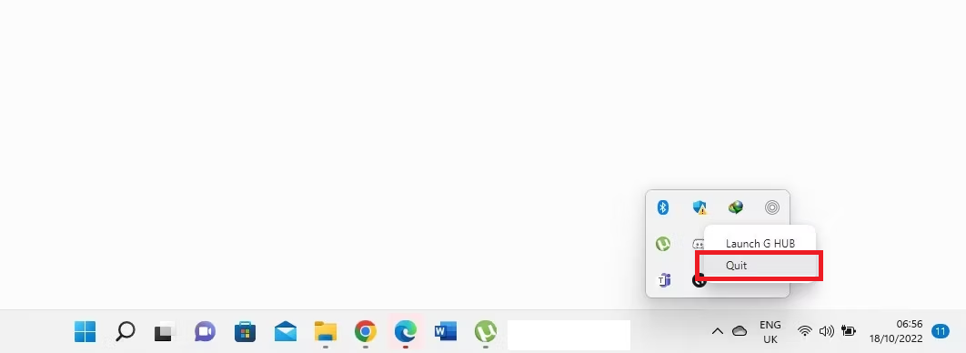 - Right-click on the Logitech G Hub application in the system tray and select Quit.