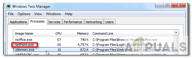 Terminate Setpoint.exe - Upon removing this file, the system will force Setpoint to use the DLL located within Windows or replace it with a fresh copy as explained earlier.