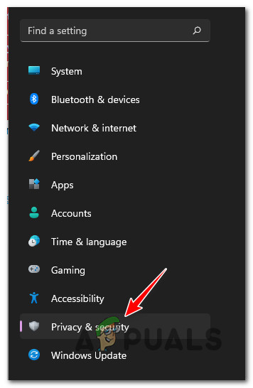 Accessing the Privacy and Security tab - Now click on the Windows Security option and then Virus and Threat protection.