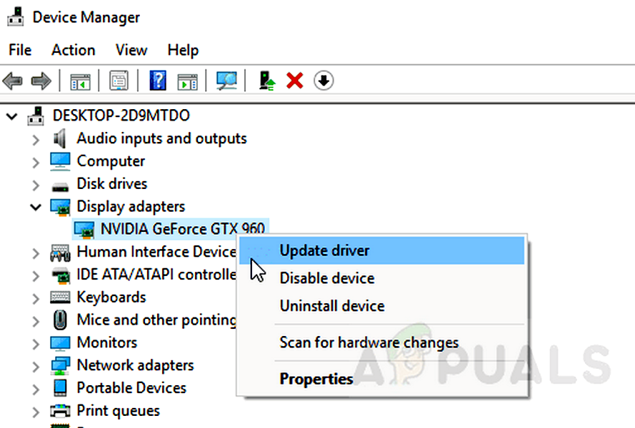 - Click on the graphics card name and right-click on the one with a little yellow exclamation icon