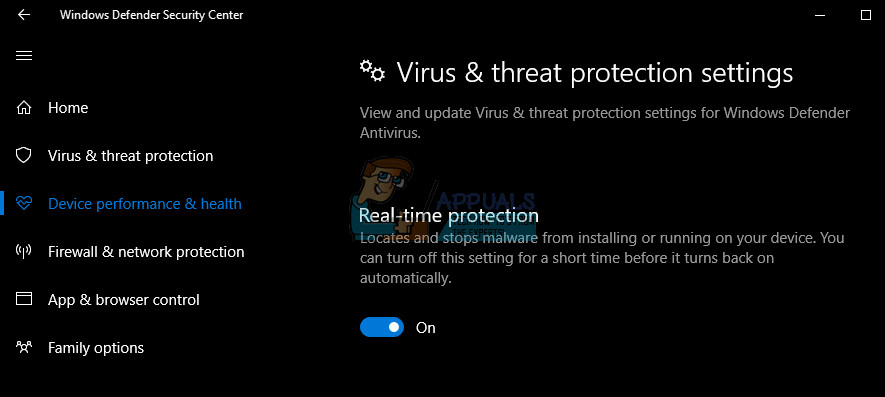 Accessing the Virus & threat protection - Then click on Manage Settings and click the toggle to turn off the Real-Time Protection.