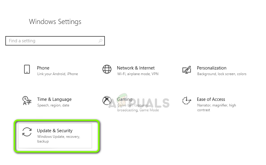 - In the Settings, Menu click on the Update & Security