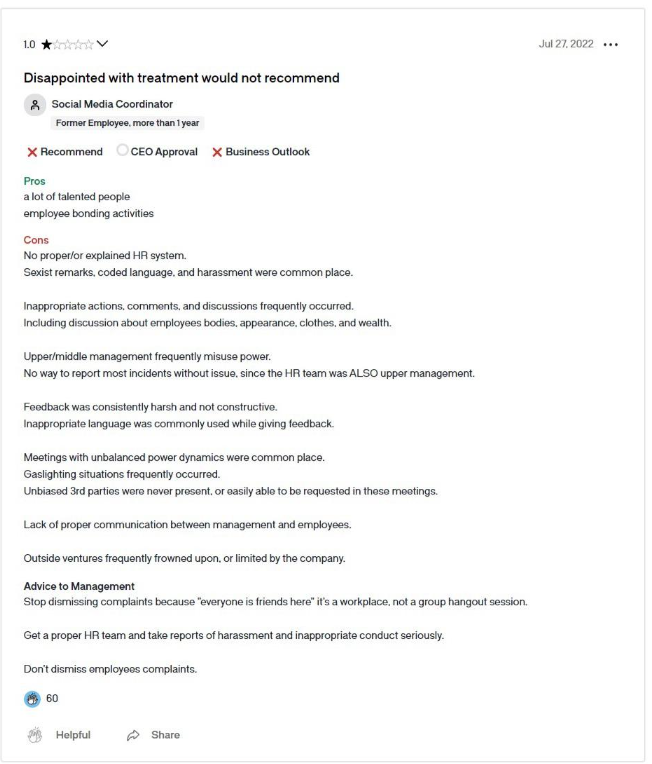 An Ex-Employee, Madison who worked in the company for less than one year has made serious allegations against the working environment of the company. There have been multiple instances of verbal abuse, privacy invasion, a few accounts of sexual harassment, and constant bullying. And these are not just buzzwords, because what we’re about to uncover will indeed shock you.