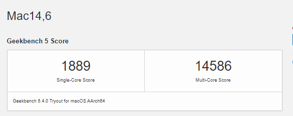 As for the actual tests, the M2 Max scores 1889 points in the single and 14586 points in the multi-core test. To put this into perspective, the last-gen M1 Max had a score of 1787 points and 12826 points respectively. This makes the M2 Max a nice 5% and a 13% improvement against the M1 Max.