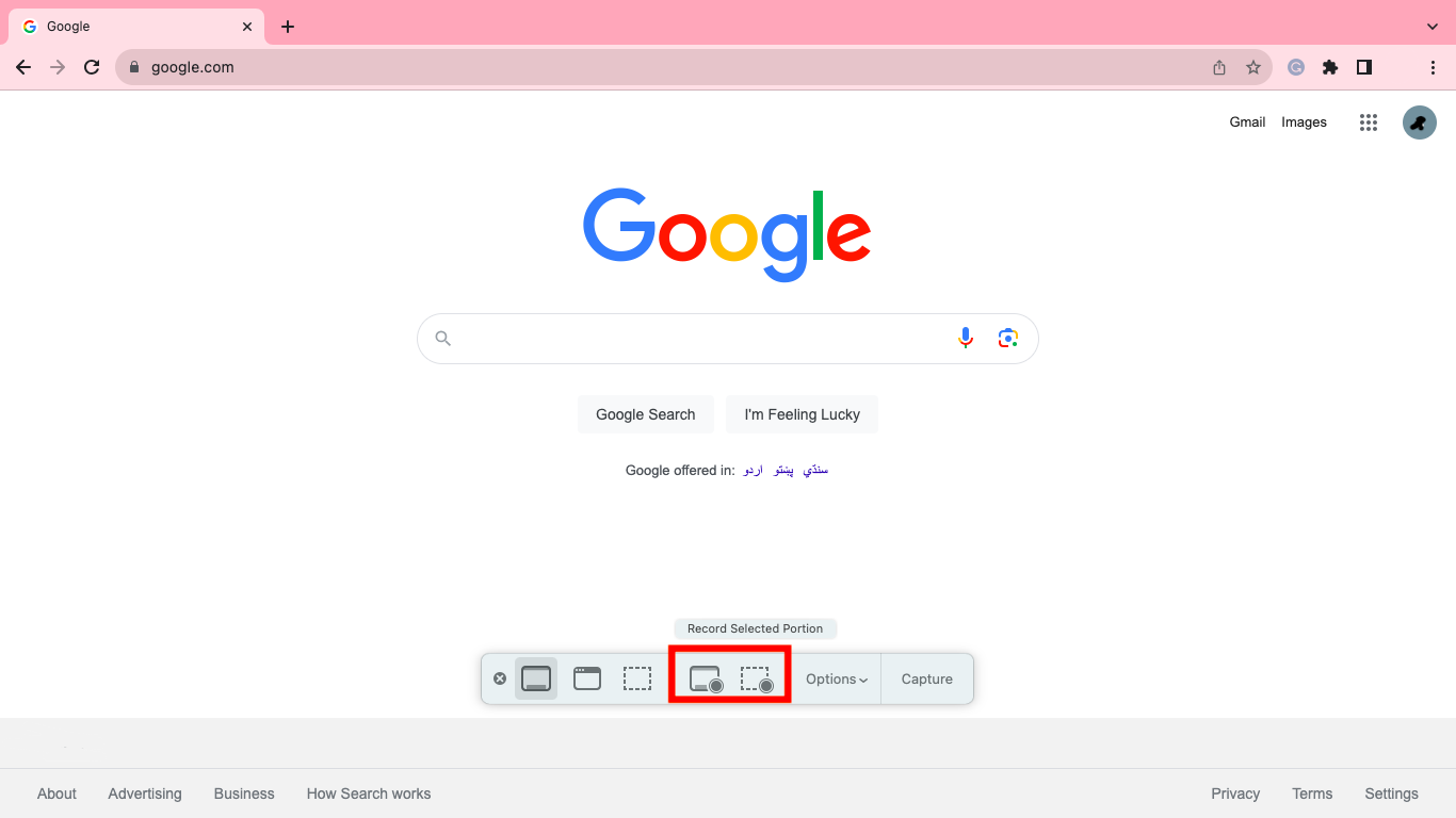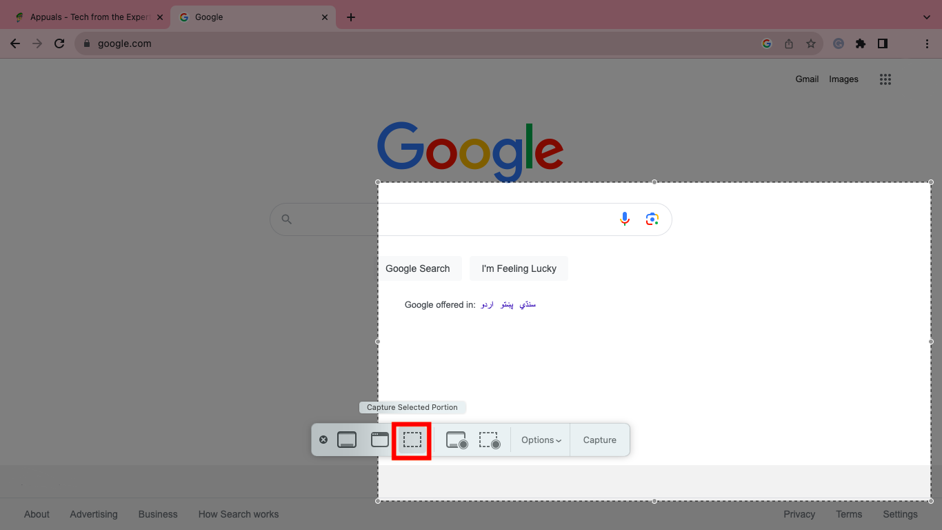 - Choose Capture Selected Portion to create a frame around the particular area you want to capture.