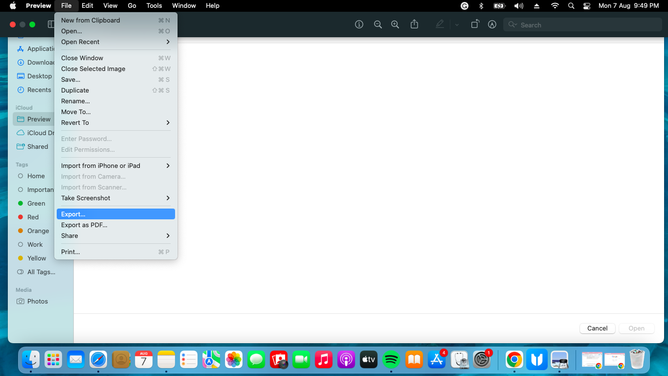 - You can save the screenshot by clicking File in the top menu and then Export.