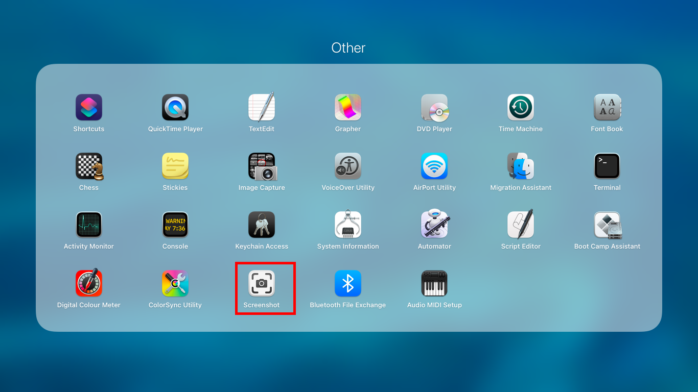 - You can also access it by typing Screenshot in the spotlight by pressing Command + Space.