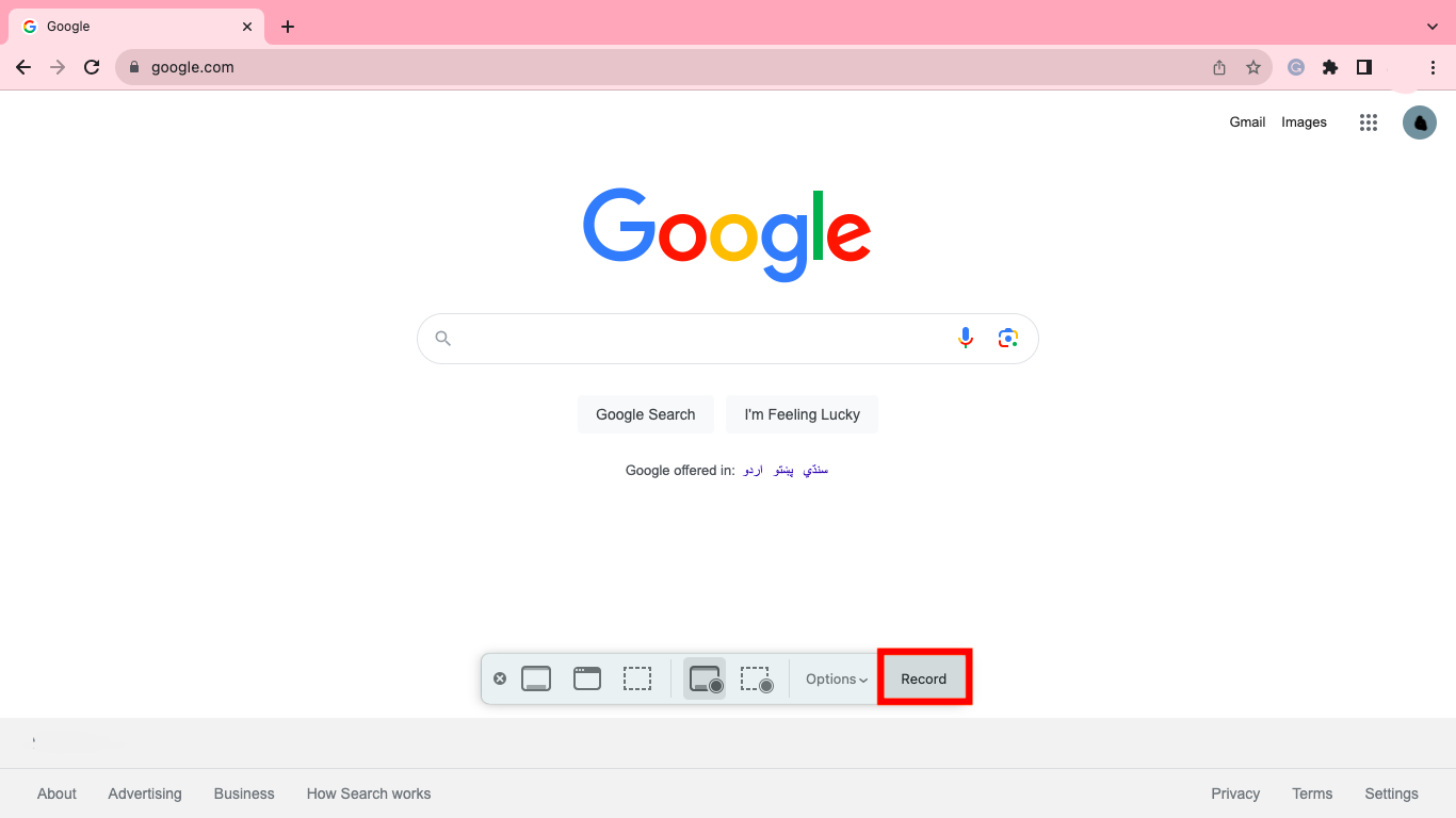 - You can either click and drag to choose a specific region, click on a window to record its content, or capture the full screen.