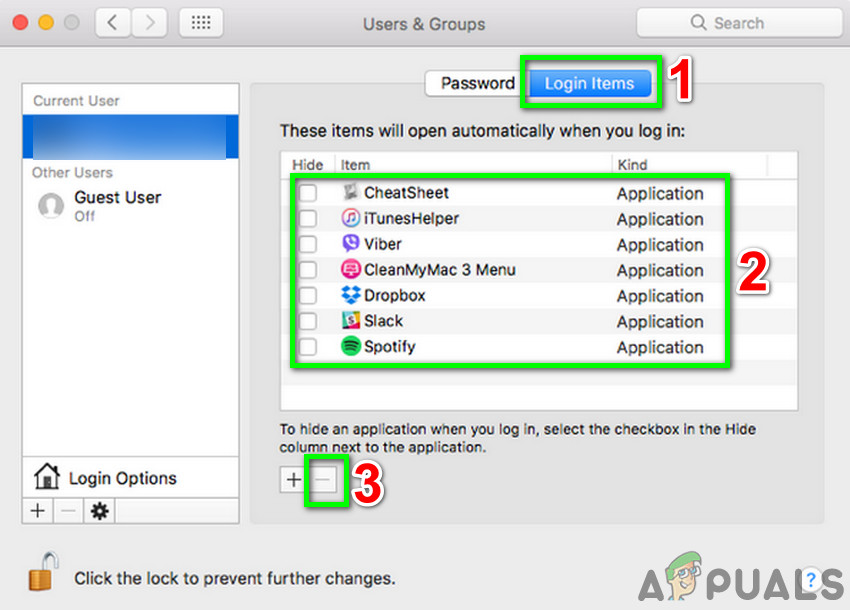 - Select the item that you suspect to be the reason for the issue and then near the bottom-left of the menu, click on the minus (-) button. One such application is MacKeeper.