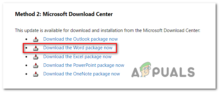 Some affected users have confirmed that some older versions of Windows will not trigger this behavior. Although this is not the ideal solution, you should be able to fix the issue by downloading & installing an older Word package using the Microsoft Download Center.