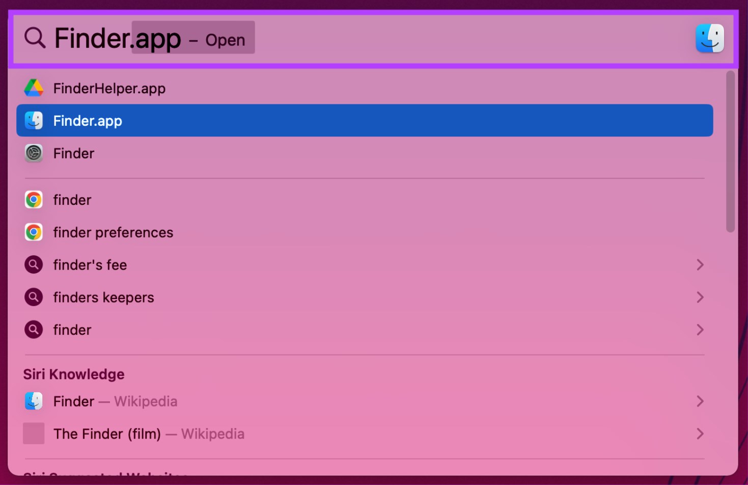 - Press the Command + Space keys, type “Finder,” and click on the Enter key.
