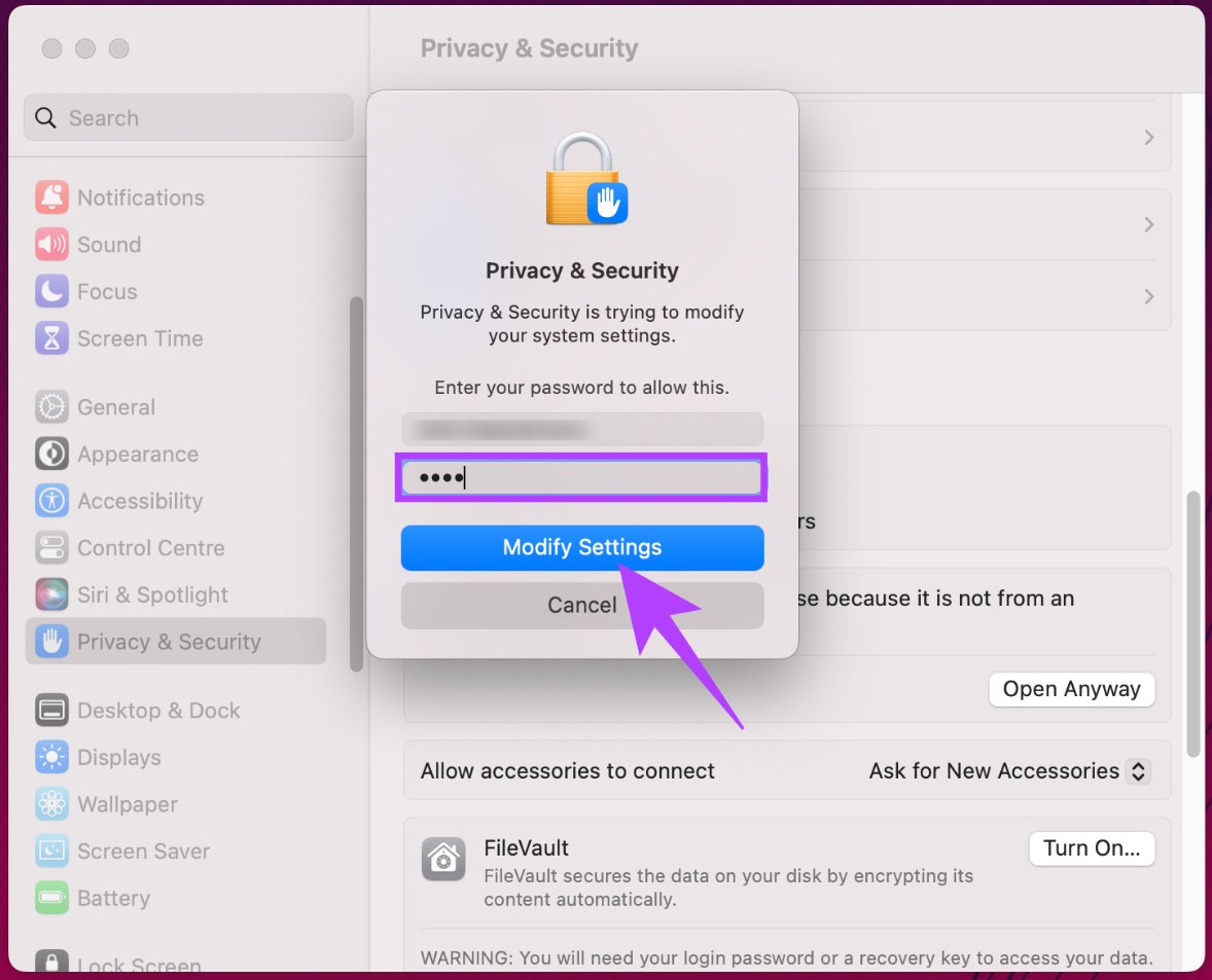 Select Open Anyway - You can use your Touch ID or enter the password and click on “Modify Settings.”