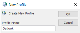Removing any Outlook email profiles - Once every profile has been removed, click on Add. Next, specify a name for the new profile and click Ok to create it.