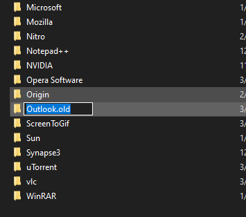 Some users facing the same issue have managed to get the problem fixed by accessing the AppData folder and renaming the existing Outlook folder in order to force the application to create a fresh folder. This operation will also ensure that you don’t have to deal with any data loss in case the operation is not successful.