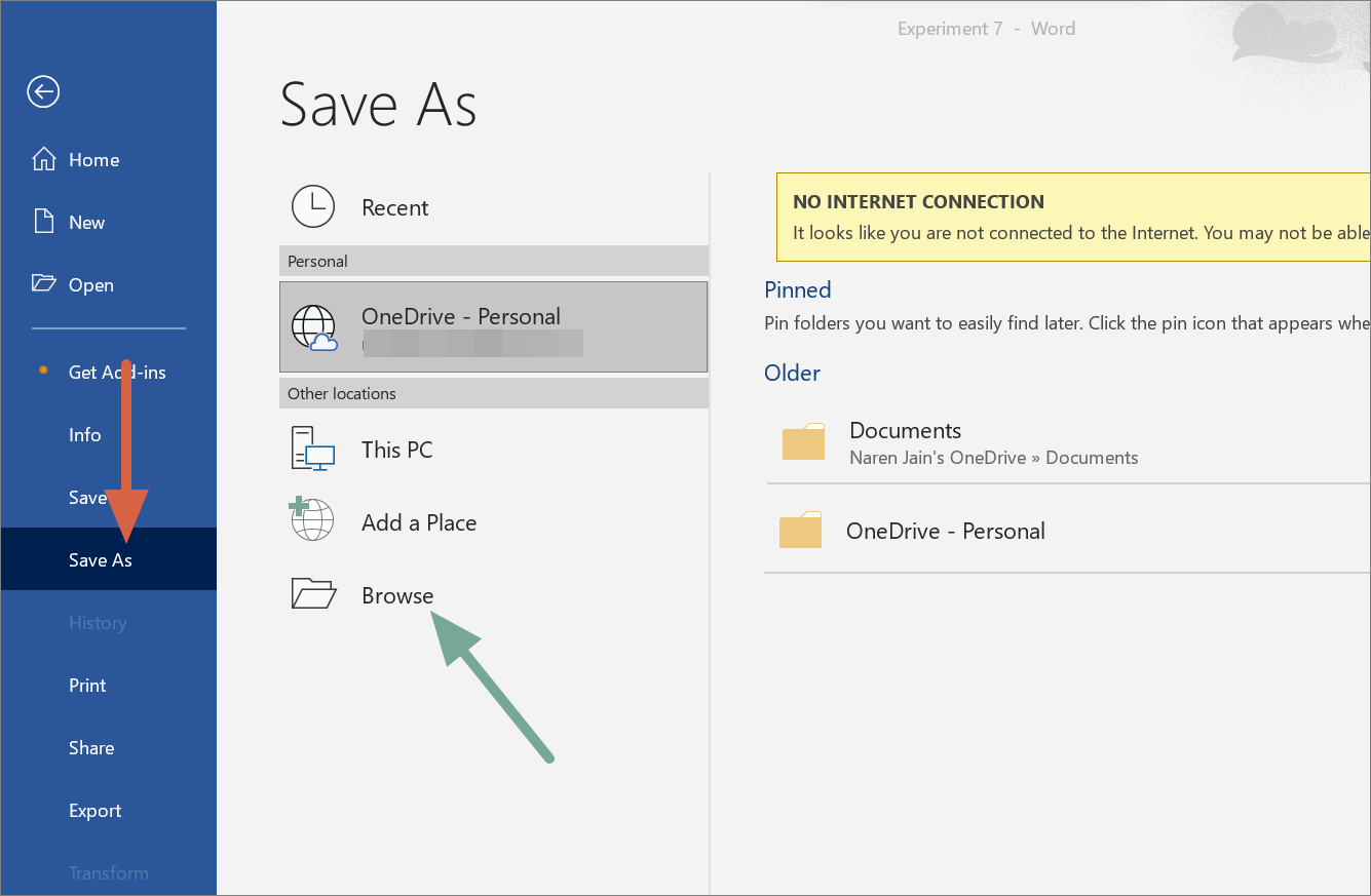 On older versions of Word, you’ll be directly given a Save As dialog box, where you can browse and choose a new location to save the copy or simply give a new name to the file.