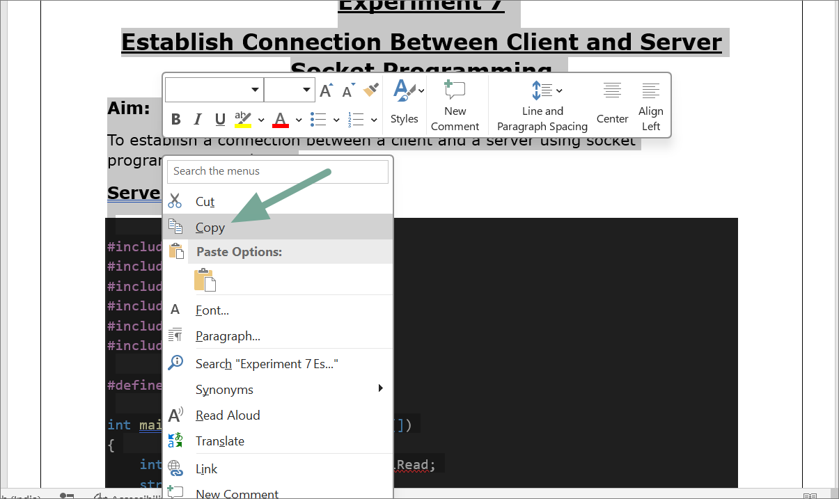 Right-click on the selected text and choose Copy or use the keyboard shortcut Ctrl + C on Windows and Command + C on Mac.