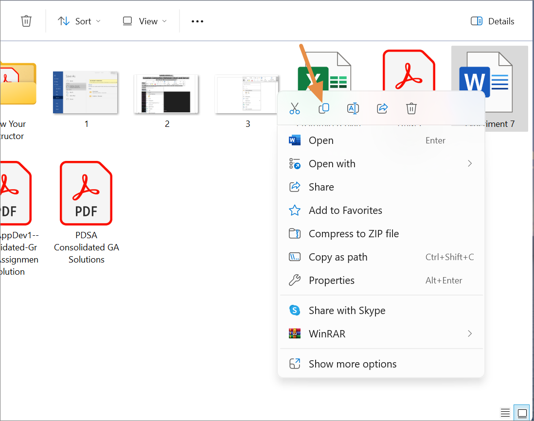 Right-click on the file. On both Windows and Mac, choose Copy from the dropdown menu or use the Control/Command + C shortcut.