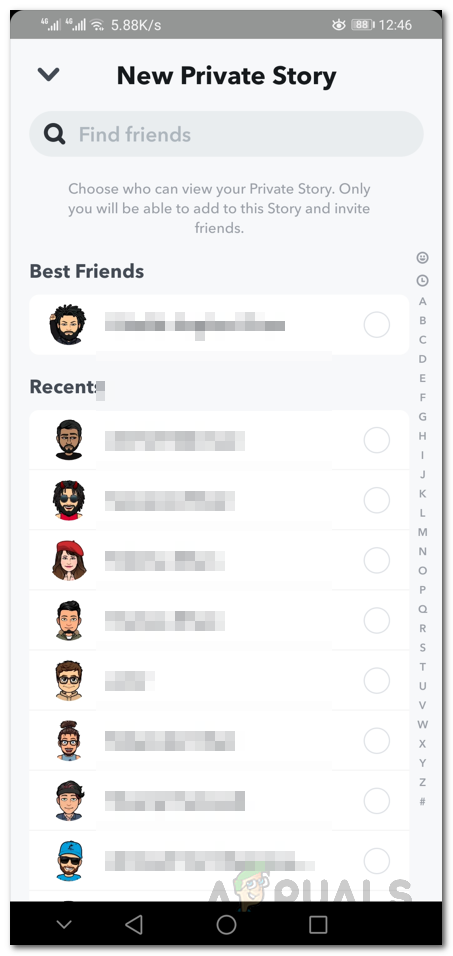 Select “New Private Story” to start setting up. - Pick the friends you want to include. Only they’ll see your private story.