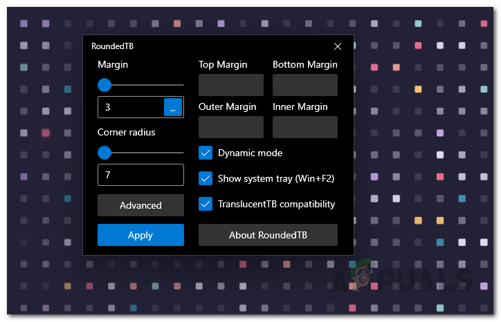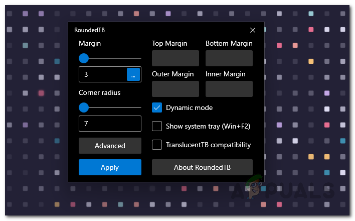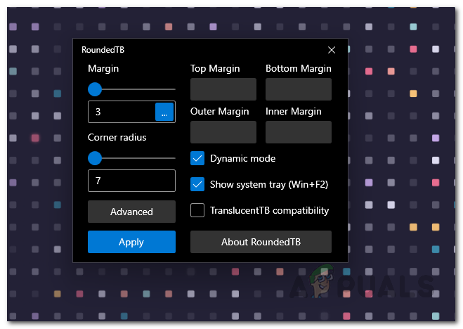 As it turns out, in order to give your taskbar the macOS dock look, you will first have to download a utility that will make your taskbar rounded. In addition to that, there are plenty more features that you can take advantage of using the RoundedTB utility. For example, it allows you to change the margins of your taskbar as per your liking. On top of that, there is a dynamic mode that restricts your taskbar to only the icons that are added as well as the system tray towards the end. This means that you won’t be seeing the whole taskbar lines like you normally do. Now, enough with that and it is time we show you how to get it, so let us get started.