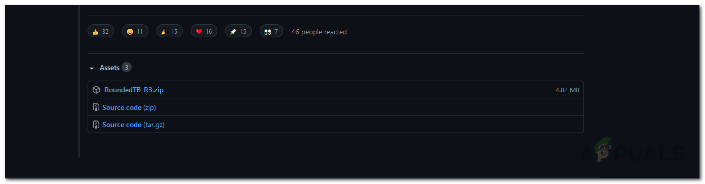 RoundedTB on Microsoft Store - Another way you can get the utility is by downloading it from the GitHub repository. To do that, head to this link here. Then, scroll down and click the RoundedTB_R3.zip file to download it.