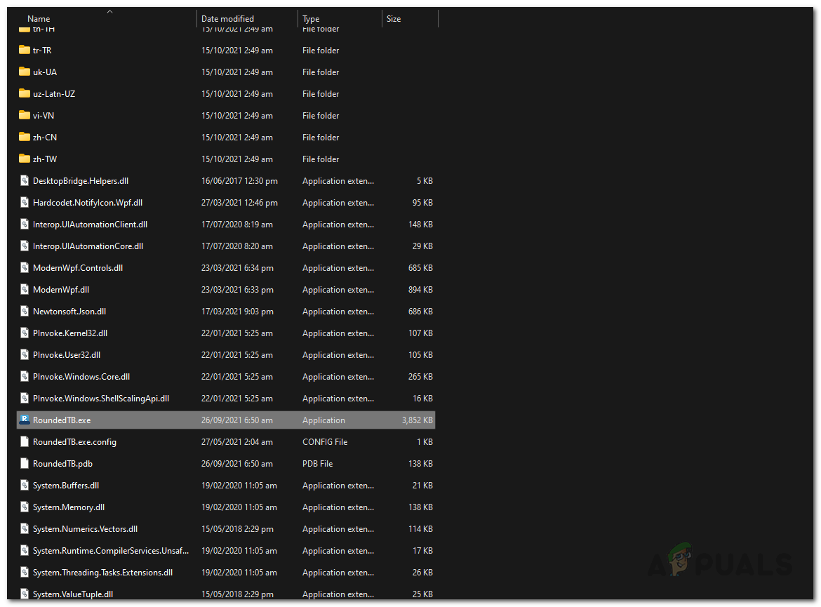 - After that, navigate to the directory where you extracted the utility and double click the RoundedTB.exe file.