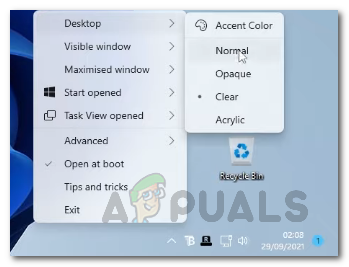 TranscluentTB Menu - Also, make sure that the Open at boot option is ticked.