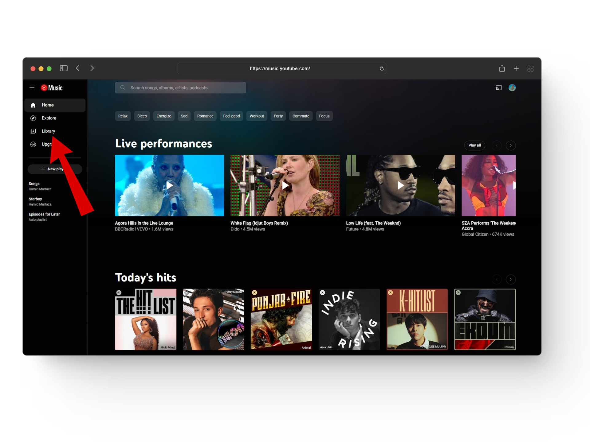 If you are using the YouTube Music browser website, you’ll first need to log in to your account, and from there you can follow these steps:
