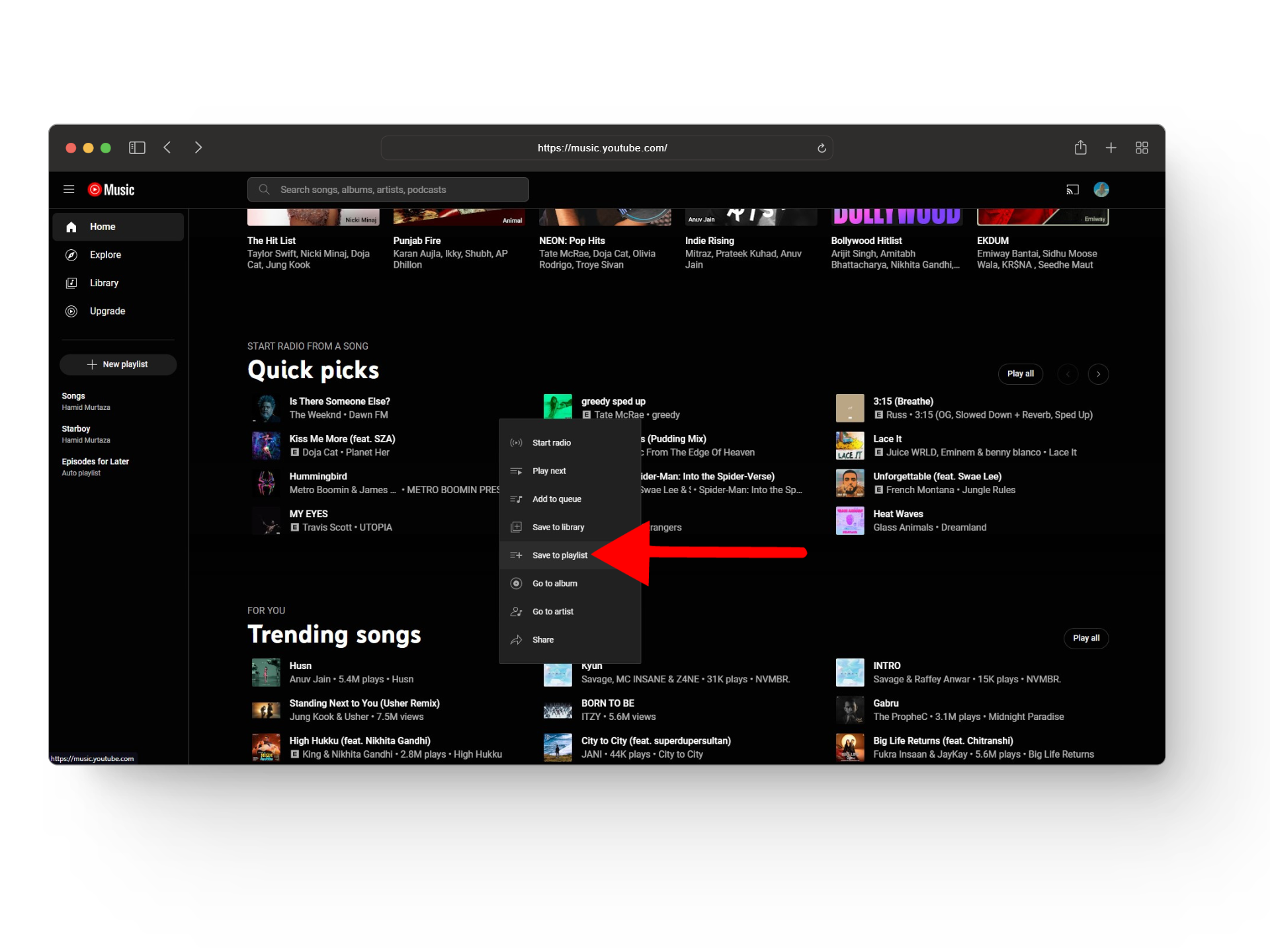 - Head over to YouTube Music and choose the song you want to add to a playlist.