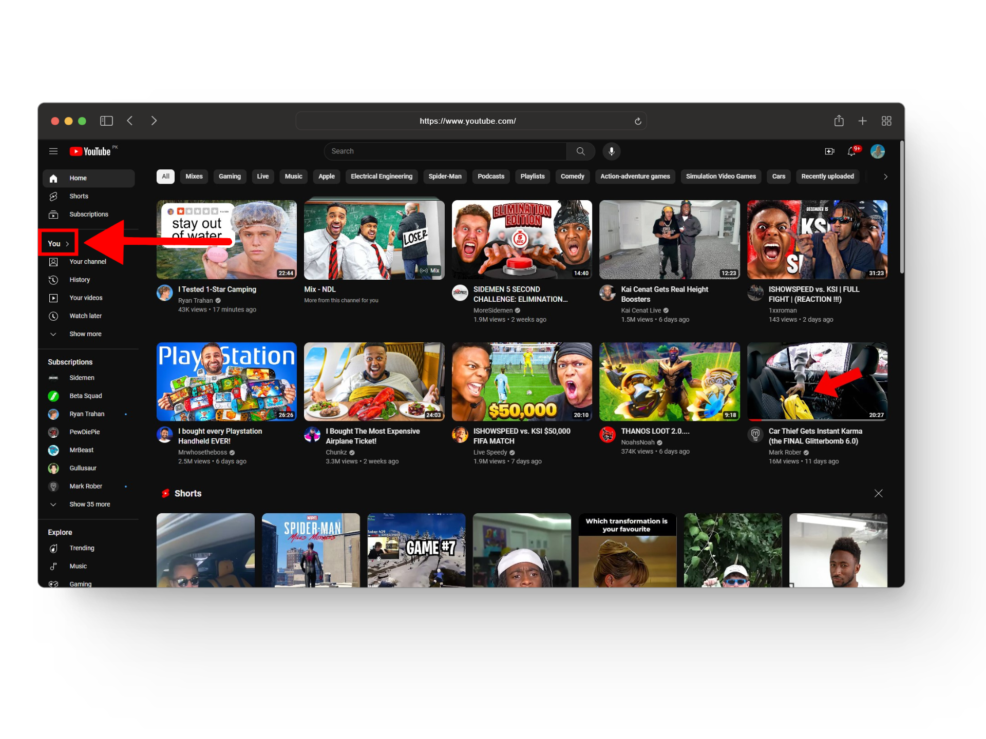 Open up YouTube - Once that’s done, you’ll need to head over to the You tab in the sidebar.