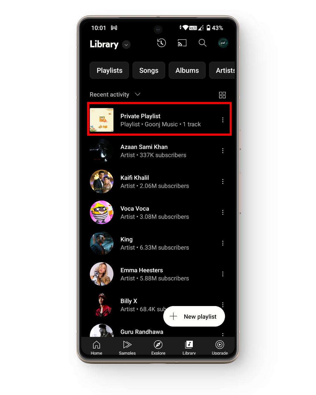 Tap on the library tab - From here, tap on the Playlist you want to make private.